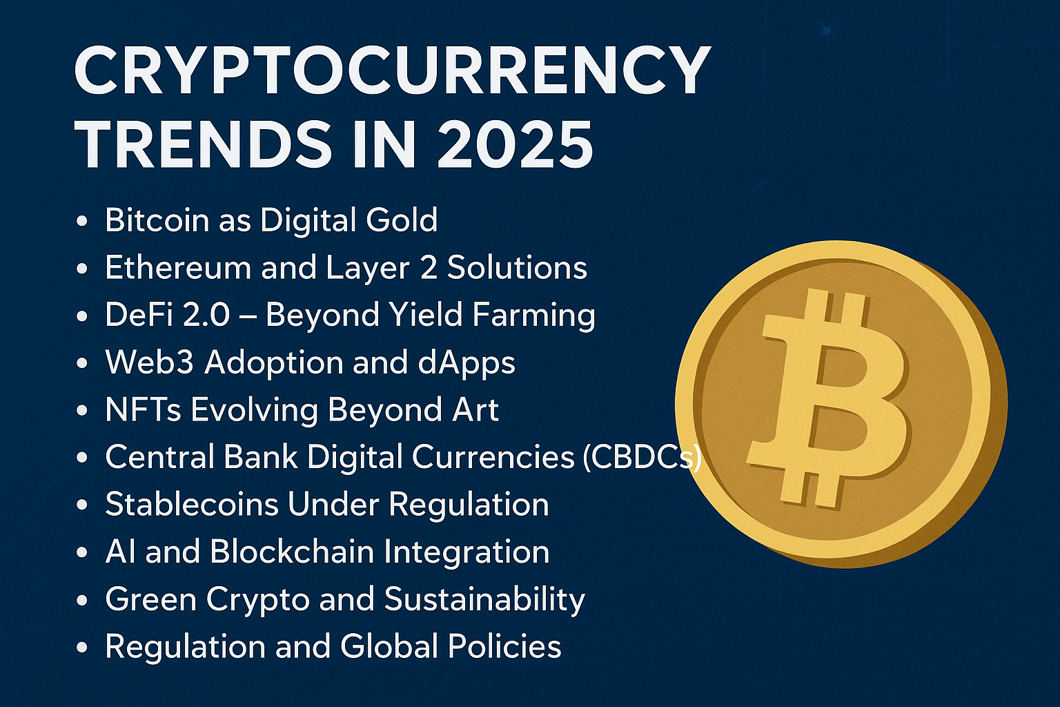 The crypto industry in 2025 is more dynamic, regulated, and integrated with real-world systems than ever before. From Bitcoin as digital gold to DeFi 2.0, NFTs beyond art, AI-blockchain convergence, and CBDC debates, the space is expanding rapidly.